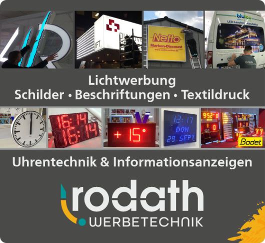 Seit über 37 Jahren im Schilder- und Lichtreklameherstellerhandwerk tätig, bietet das familiengeführte Unternehmen RODATH Werbetechnik Erfahrung und fachliche Kompetenz...